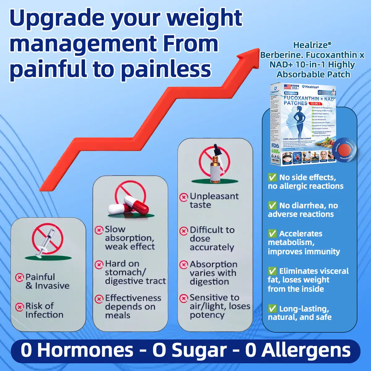 After years working in a hospital pharmacy, I clearly understood the limits of traditional weight-loss productsโslow results, easy rebound, and poor metabolic support. Despite diet control and exercise, my weight kept increasing. That changed after I began using Healrizeยฎ Berberine ยท Fucoxanthin ร NADโบ 10-in-1 Highly Absorbable Patch.